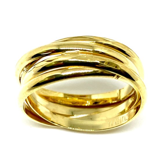 Solid 14K Yellow Gold Diamond Cut High Polish Coil Crossover Band Ring 6-8Excellent workmanshipRing Size: 6-8 (please contact us for resizing)Ring Dimensions: 21mm x 7.25mmWeight:...