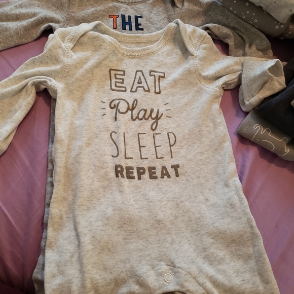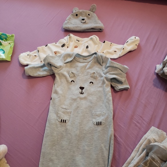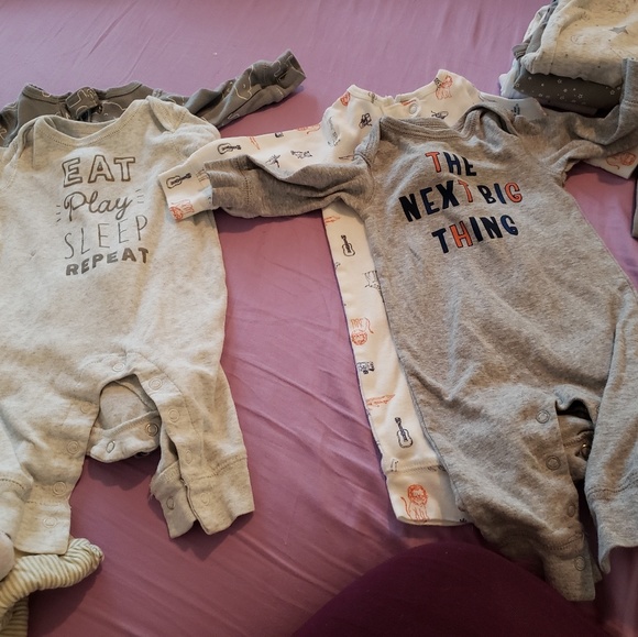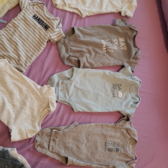 like new size 3 mouths baby boy...13 short sleeves onesies 9 long sleeves 6pants4 jumpers 2 gowns with hat 2 outfitsOriginally paid over $200Only ever washedAnd baby detergent also have some baby socks and mittens
