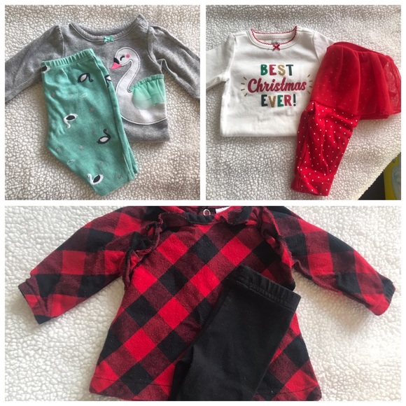 Newborn two and three piece sets. All items worn only 2-3 times as my daughter grew quickly. Very cute and perfect for the fall/winter baby girl!!! Will consider all offers and bundle to save!!!Will create separate post if you want individual sets.