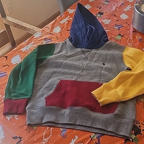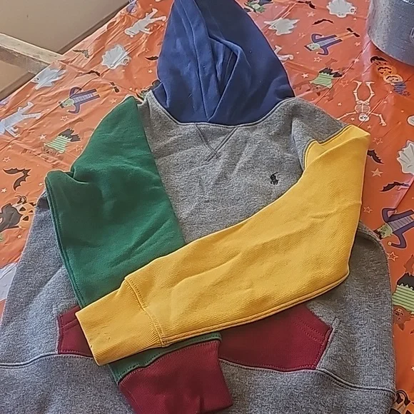 polo size 7 front tie shorts.side pockets. rear pocket.jersey material.matching size 8 hoodie.front pockets.