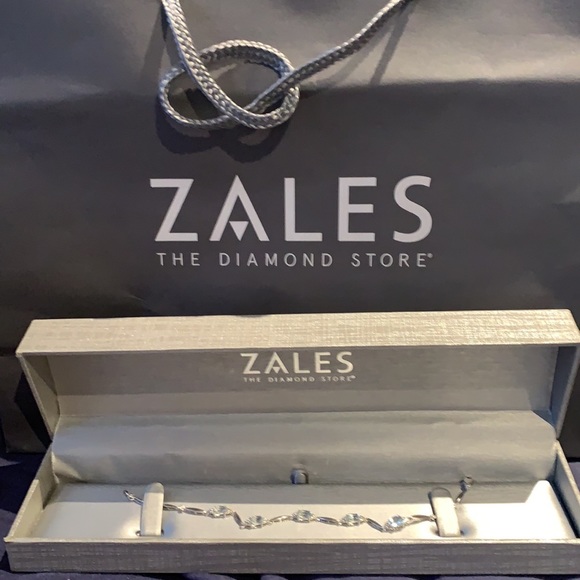 The matching earrings and bracelet are both aquamarine stone. They are from Zales jewelry. They’ve never been worn and are still in the box.