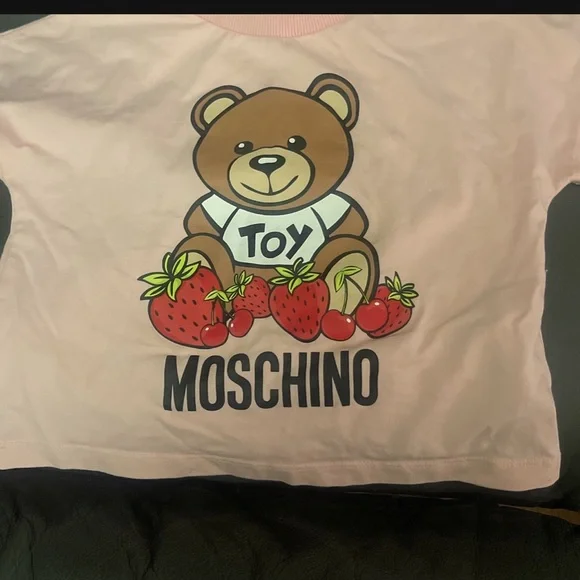 Toddler girl pink and white Moschino set, size 4t, coming from a smoke free home, authentic.