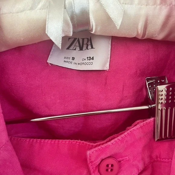 Zara hot pink linen jacket and high waisted shorts size 9 y.o, good condition