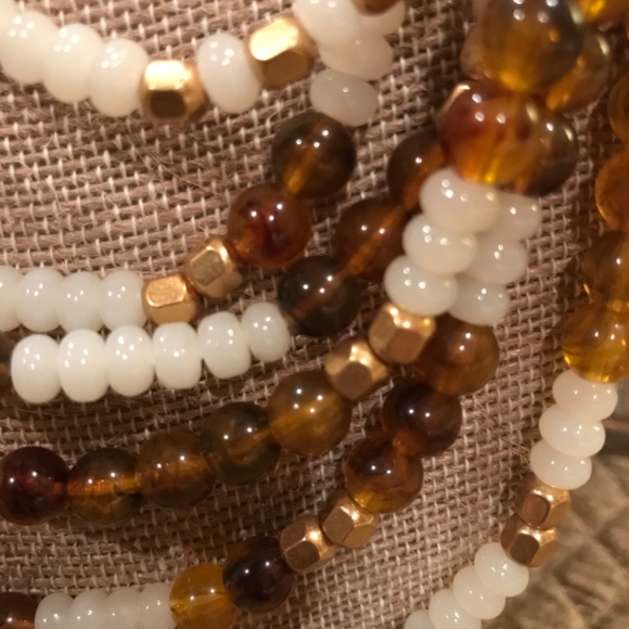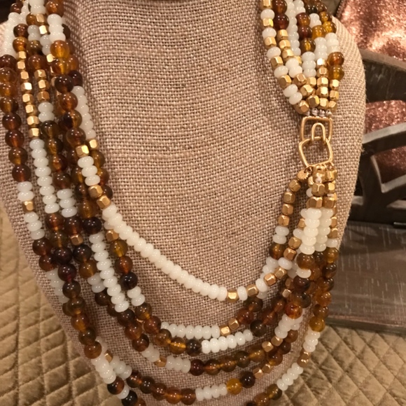 From India Hicks FINAL Collection, THE GOLDEN BEACH NECKLACE, is a 21” Length Multi Strand Of Tiger Eye, Acrylicand Gold Brass Plated Beads. The closure is India Hicks signature...