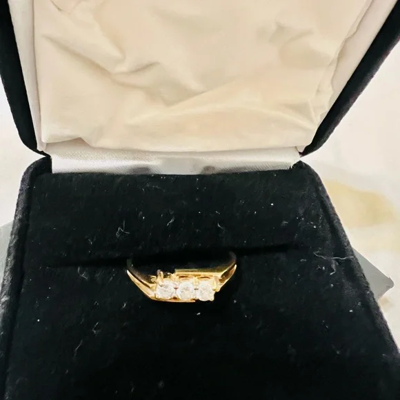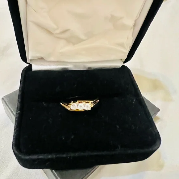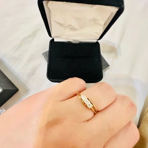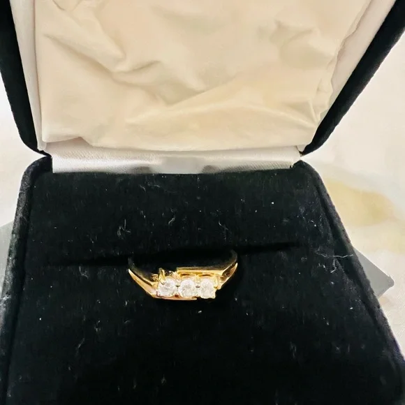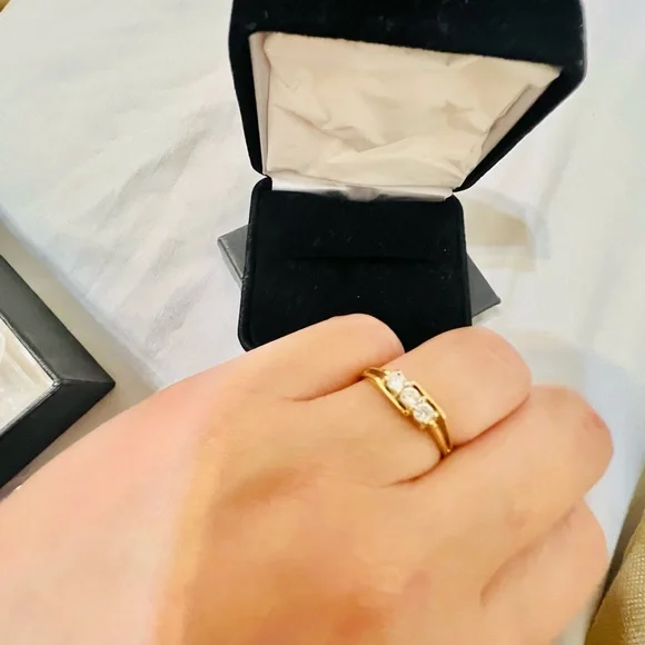 Authentic 18K Solid Gold RingNOT PlatedMade in DubaiApproximately 2-3gmsSize 6With 3 Zirconia StonePawnableMarked “750” means Authentic 18K Gold