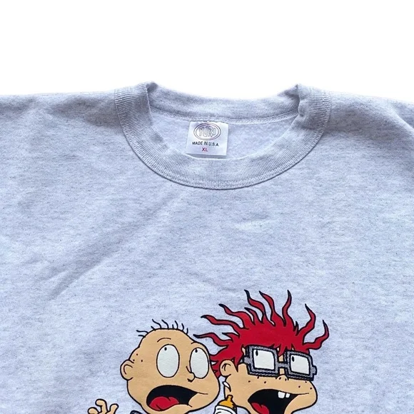 PreOwned in excellent vintage condition Yuri Rugrats! On The Loose Youth Bootleg Sweatsuit Set. Like new, light grey, made in USA, Tommy and Chuckie running image on front of sweater, Reptar Rugrats! On The Lose! (Typo) on left leg, no pockets, blank on back, 50/50 poly-cotton, late 90s vintage flare! Size XL.Measurements:[Top] Length-22” Chest-18” Collar to Arm-24”[Bottom] Length-31” Waist-20” Hip-19” Inseam-21.5” Front Rise-12.5” Leg Opening-4”