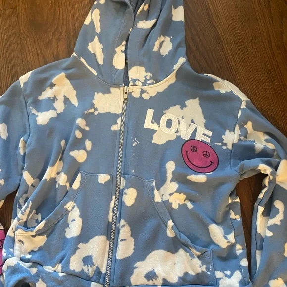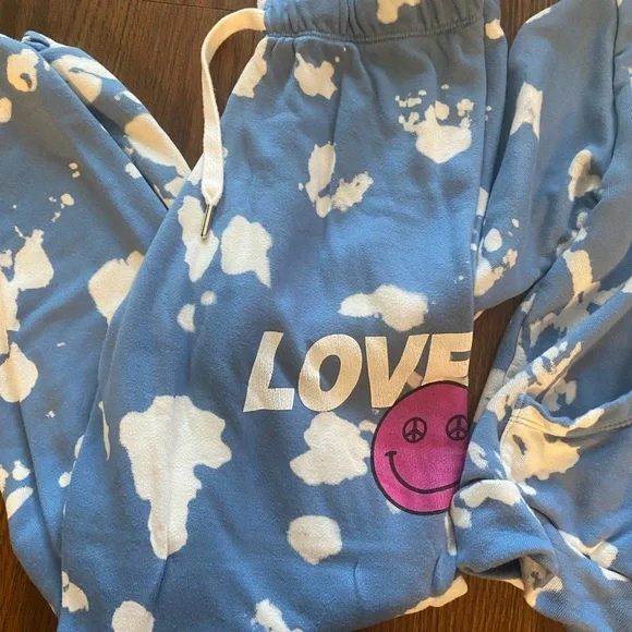 FBZ (flowers by zoe) tie-dye sweat set! the peace sign eyes on the smiley face is so cute on this!