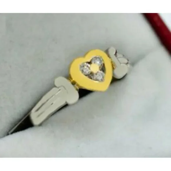 Genuine Diamonds Heart Ring 14k Two Tones Gold