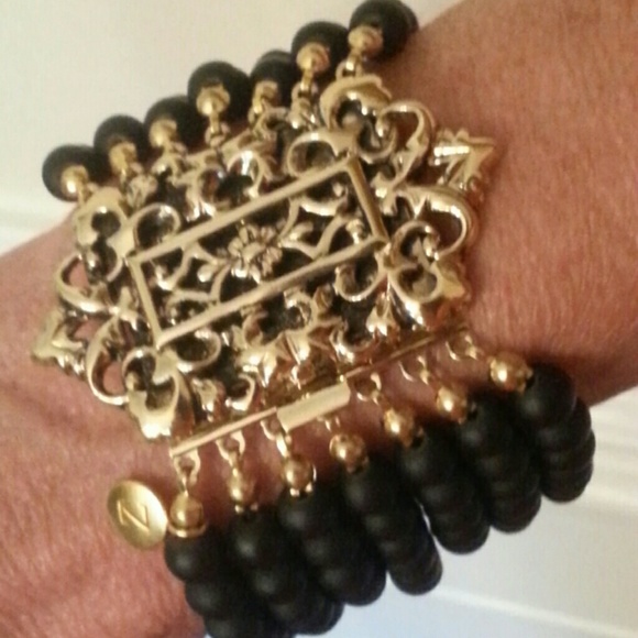 Custom 7 Stand bracelet in beautiful black seaglass. The focal points is a stunning filigree clasp. It is a quality piece, heavily gold plated and custom made in Germany.One of a...