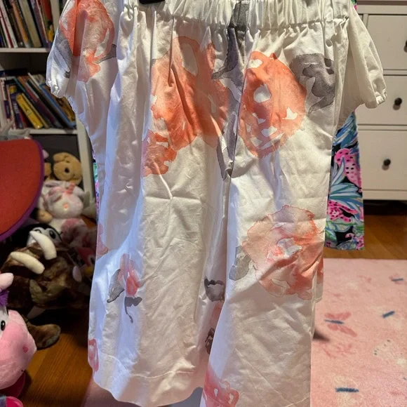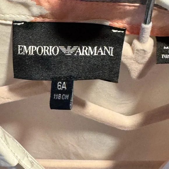 This charming kids shirt and pant set by Emporio Armani features a delightful floral design. The soft white fabric is adorned with pink flowers, making it perfect for any occasion. Comfortable and stylish, it´s a must-have for your child´s wardrobe. Matching Pants. Never Worn.