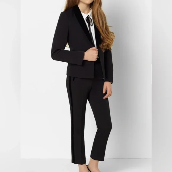 Paisley of London - Lennox style girls black tuxedo set. Size 18 - Slim fit design with velvet lapel on the jacket and pant leg stripe. Comes with jacket, pants, ‘Annie’...