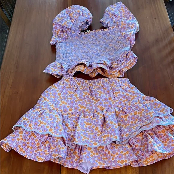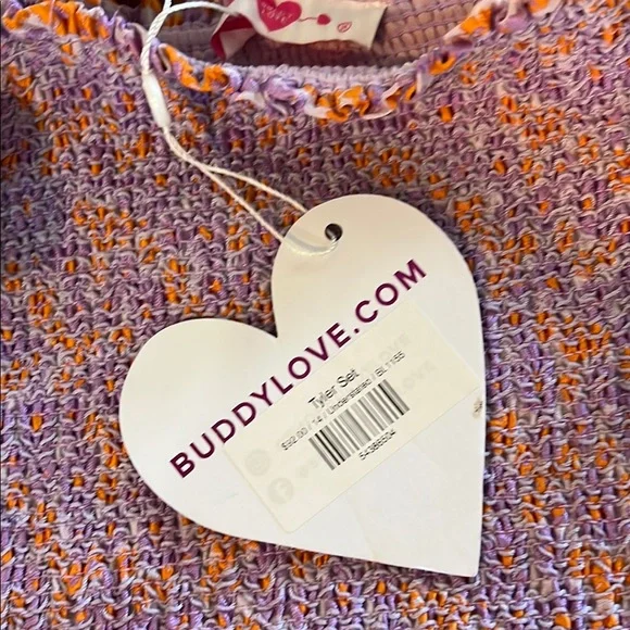 Stylish BuddyLove knit set in vibrant purple and orange. Perfect for a trendy look.