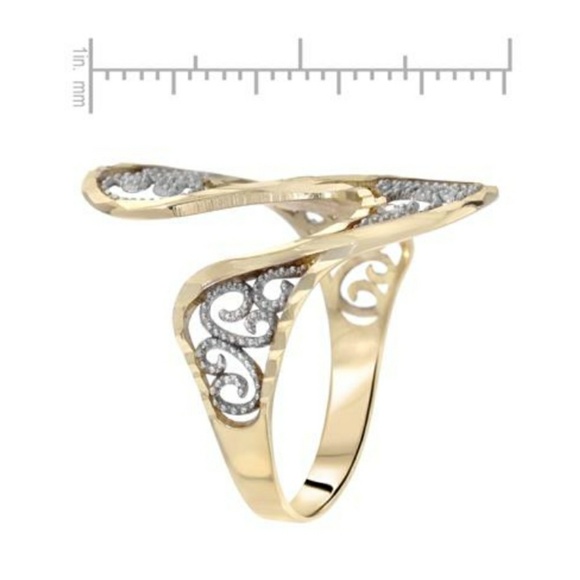 A gorgeous tow tone ring that can surprise a MOM for Mother´s Day.Gold = 10kSize = 7Heigh = 1.2 mmWidth = 24.5 mmTotal weight = 1.8 gCertificate of authenticity is available. Accordingly with the Certificate, it´s value is $640.
