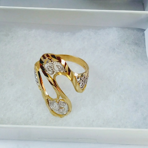 A gorgeous tow tone ring that can surprise a MOM for Mother´s Day.Gold = 10kSize = 7Heigh = 1.2 mmWidth = 24.5 mmTotal weight = 1.8 gCertificate of authenticity is available....