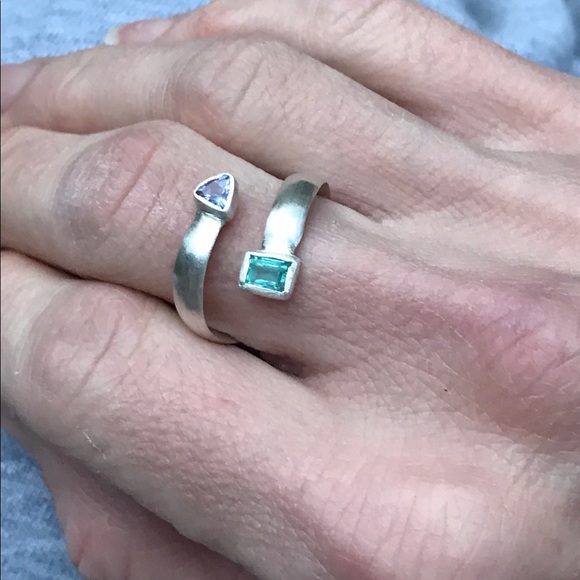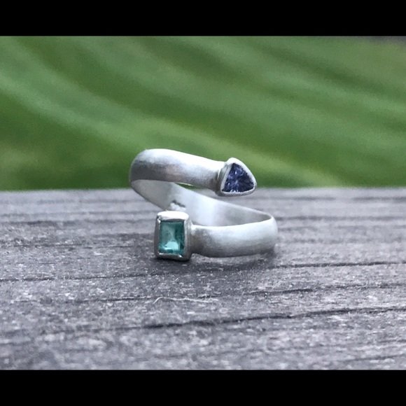 Beautiful handmade tanzanite and Colombian emerald adjustable ring. These are made to order and will take 3-5 days to ship. I can rush for an extra fee! Beautiful wrap ring!