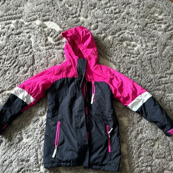 Matching set, great quality fleece lined jacket size 7/8 matching pink thick snow pants size 8. Pink and Black. Great quality in excellent condition