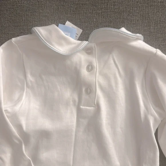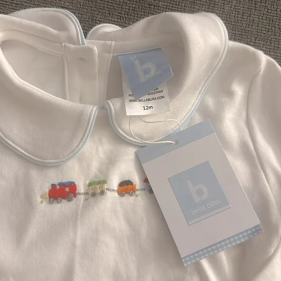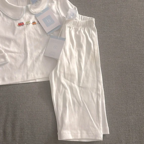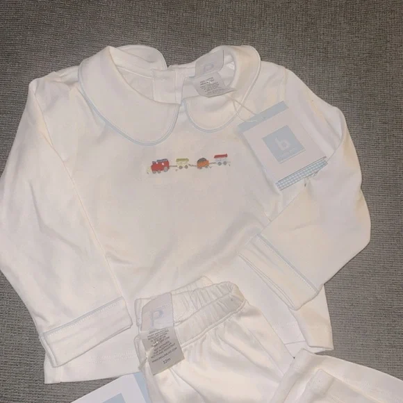 NWT infant boys setTrain detail embroidery Light blue piping3 button back Elastic waist pantsCollar