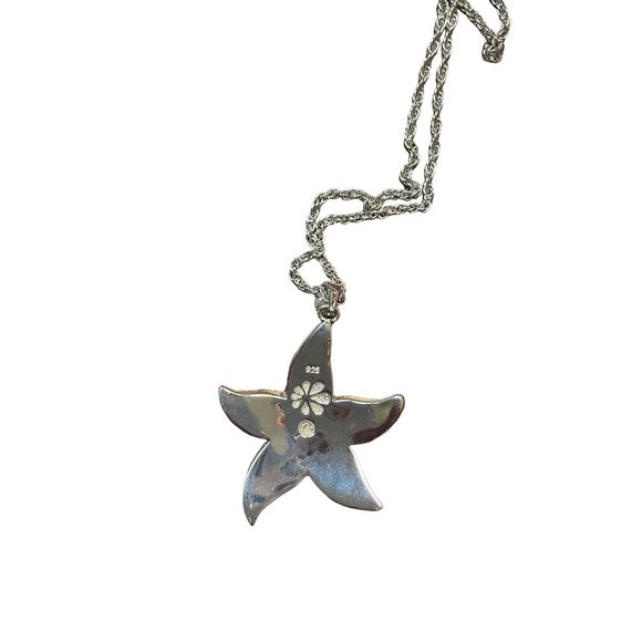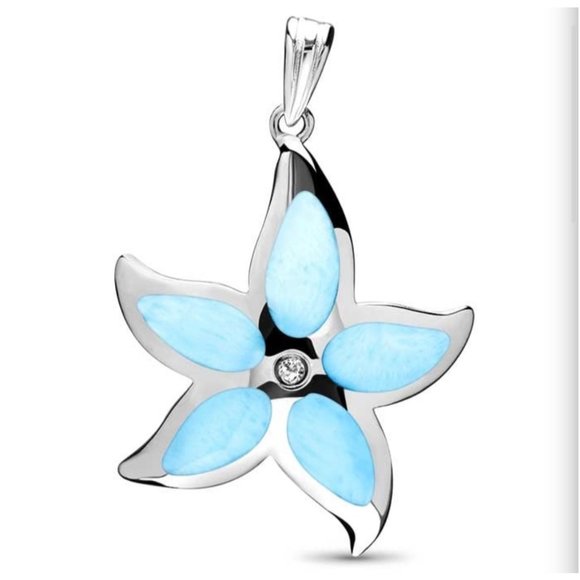 MARAHLAGO Larimar Starfish 21" & White Topaz Accent Pendant Necklace in Sterling