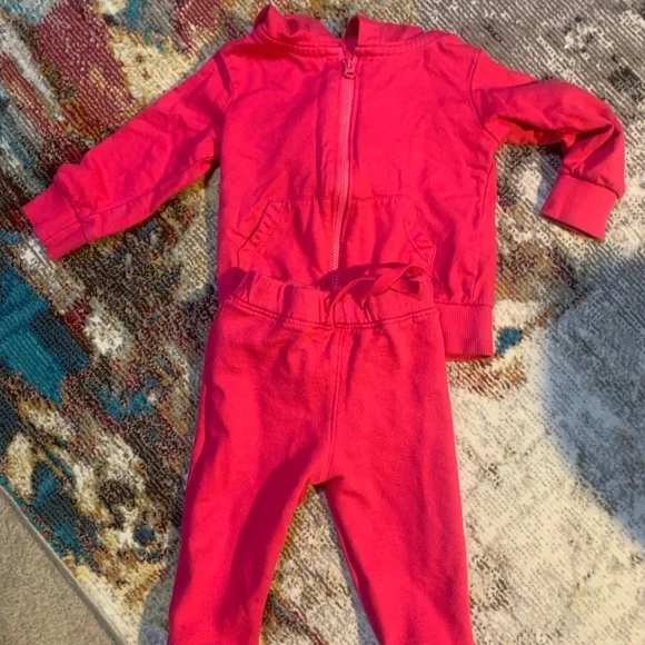 Lamaze, old navy, carters and okie dokieEach piece worn once except the hooded pink jumpsuit. No flaws, holes or stains. Sizes start at 12Mos - 24mosHeart jumpsuit set is 18-24...