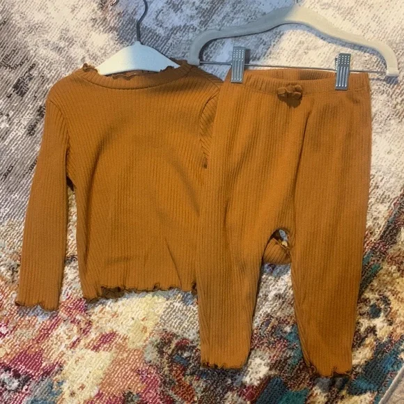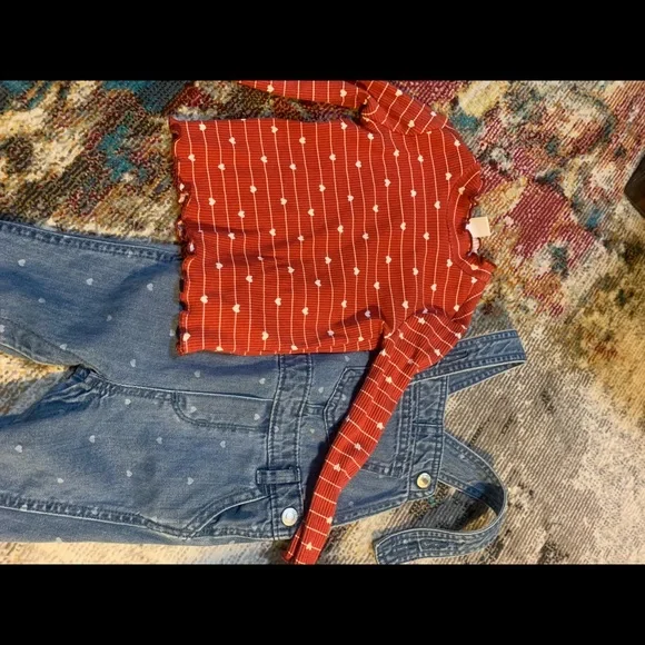 Lamaze, old navy, carters and okie dokieEach piece worn once except the hooded pink jumpsuit. No flaws, holes or stains. Sizes start at 12Mos - 24mosHeart jumpsuit set is 18-24 mos2 piece organic sweatsuit is 12 mosJacket is 12 mos3 piece dress cordory set is 18mos ; leggings never wornPink jumpsuit I believe is 12-18 mos