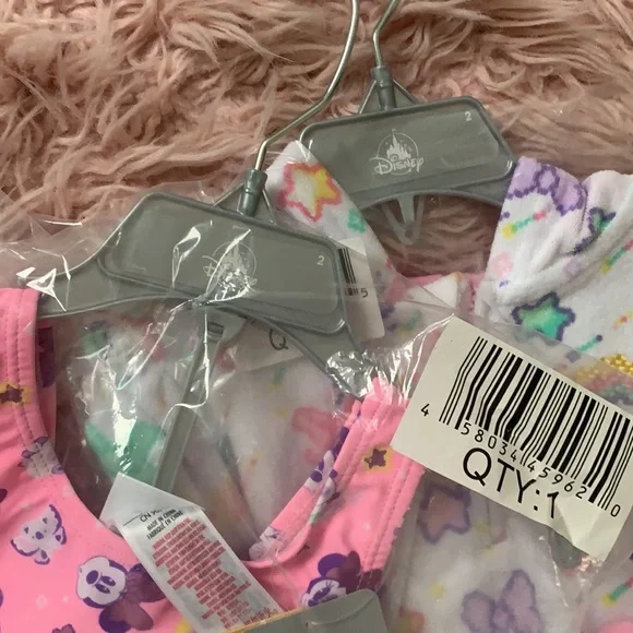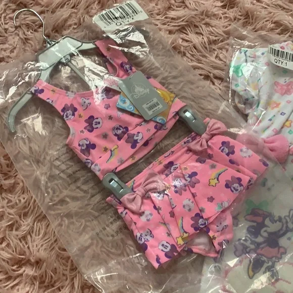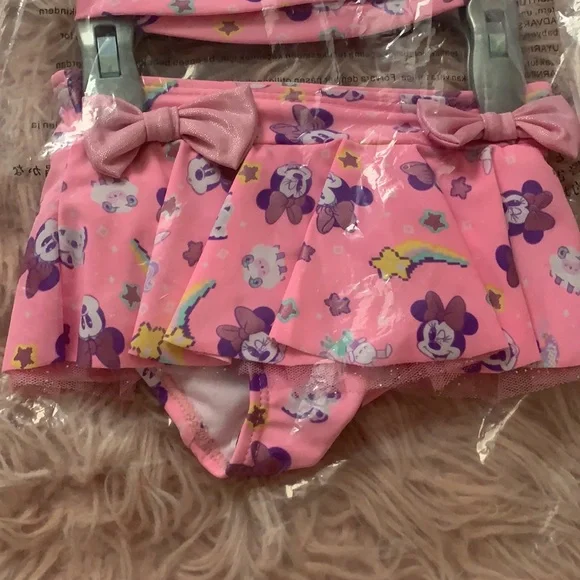 Brand New Disney Minnie Mouse Cover Up with Hoodie (Minnie ears and bow)and 2 pieces bathing suit size 2T