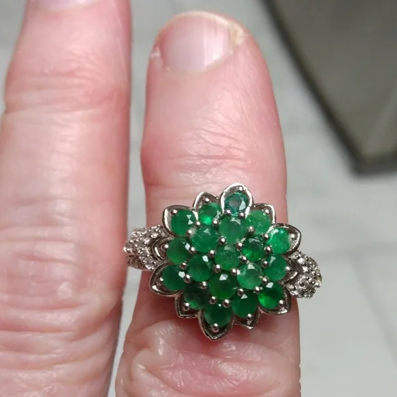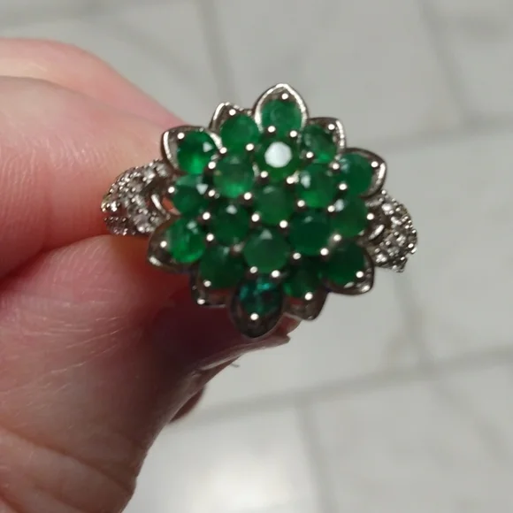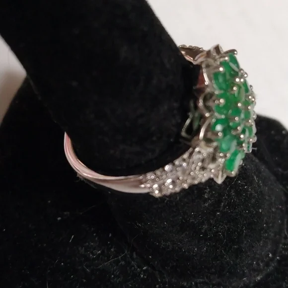Stamped .925 Kagem Zambian Emerald and Diamond Ring.Size 7