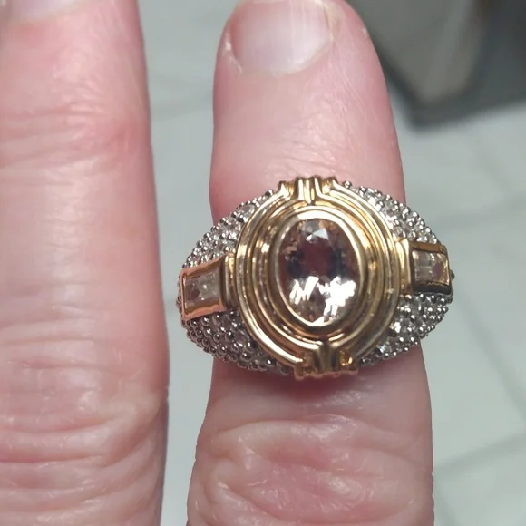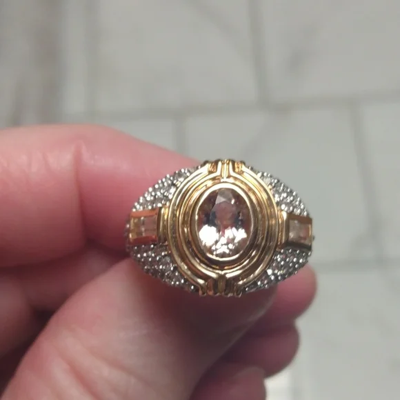 Stamped .925 India Kunzite and Diamond Ring. 7.7 Grams