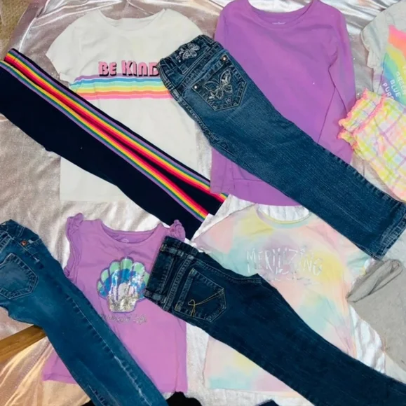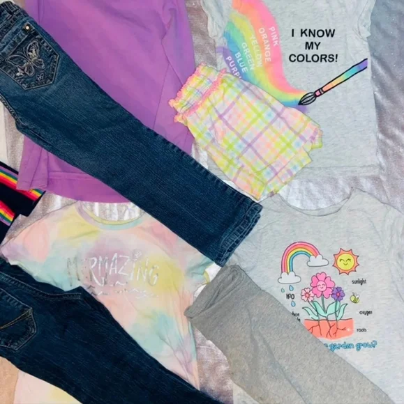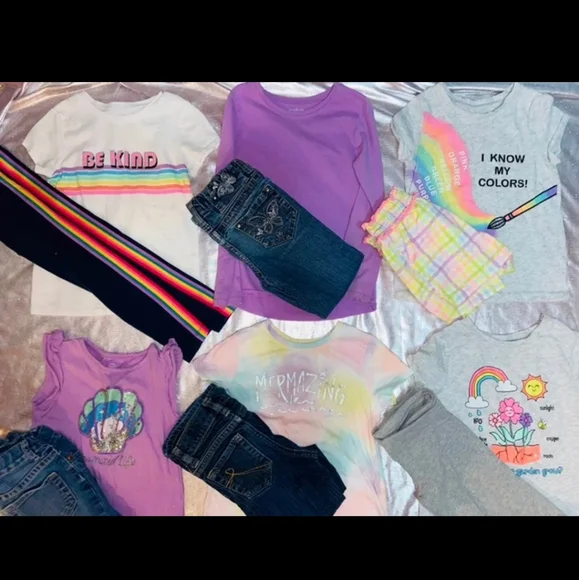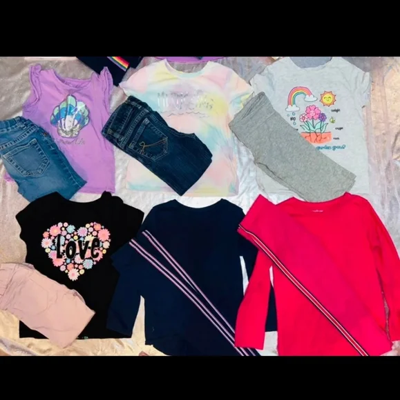 All 9 outfits are between 4/5 T girl sizes all practically new some only got to wear a couple timegreat wardrobe for back to school all brands including Arizona jeans / garanimals/ east 89 place / the children’s place / Dan skin now