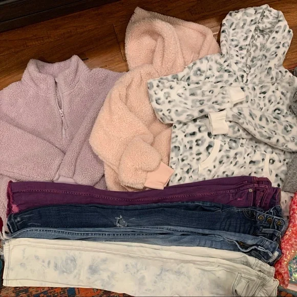 Beautiful Lot with several pieces we’re sad to have outgrown. Features:4 pairs of Jeans (2 are KanKans from Buckle & 2 are Gap)3 sweatshirts/hoodies- purple is Athleta, pink...