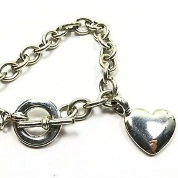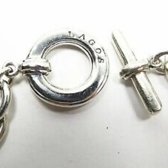 Emerging from his belief that jewelry is one of the most personal, significant forms of art, Steven Lagos set out on his own and started LAGOS in 1977. As a designer, his vision of the LAGOS woman, her timeless elegance, her integrity and her sensuality influence many of the collections.Sights and sounds forever inspire him; most of which are captured from his frequent travels to Asia and Europe. Steven Lagos´ vision goes beyond product development and permeates the entire organization of LAGOS, making the customer at the core of the company culture.Lovely Steven Lagos Caviar sterling silver & 6/8"x0.5" Heart Charm bracelet is 3 approx. 7" long with toggle clasp. Comes with black velvet pouch.
