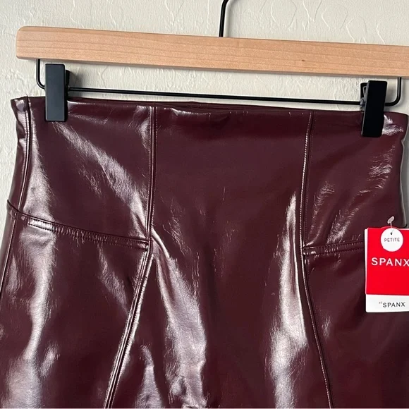 Spanx faux patent leather high rise pants ruby red Size Medium Petite (25” inseam)NEW with tagsHigh riseInseam 25”