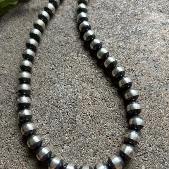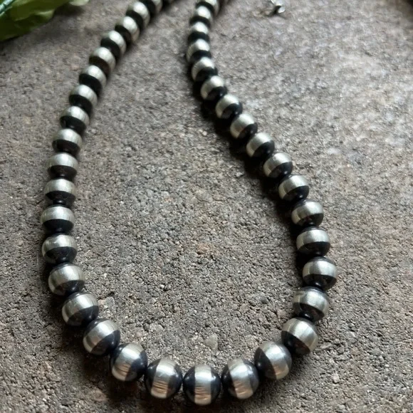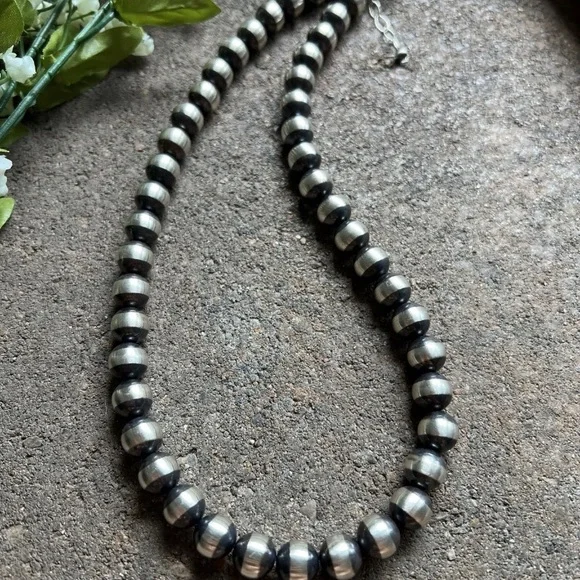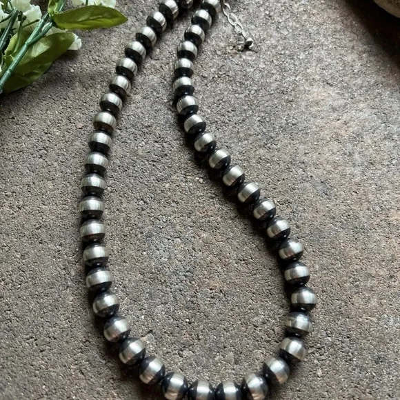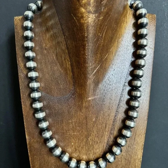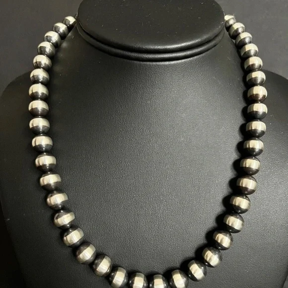Sterling Silver 10mm Pearls Bead Necklace. 20 Inch
