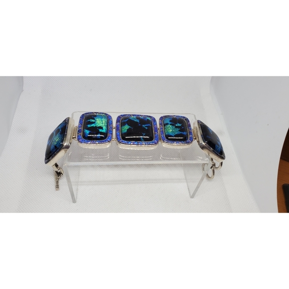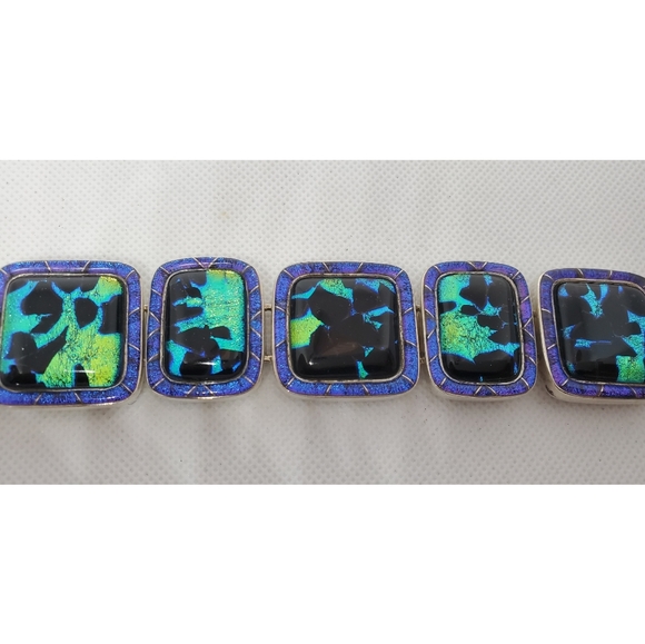 Beautiful marked sterling Mosaic Black Onyx and Opal Sterling Bracelet. Offers welcome.