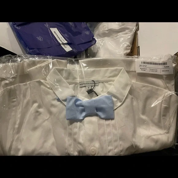 never been worn boys outfits. Perfect for a wedding or any dressy occasion! Still in packaging, can provide black bow tie.