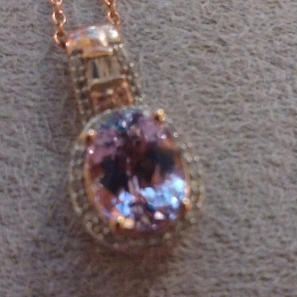 Stamped .925 Kunzite and Diamond Necklace.19 1/2" long.Pendant is 1".