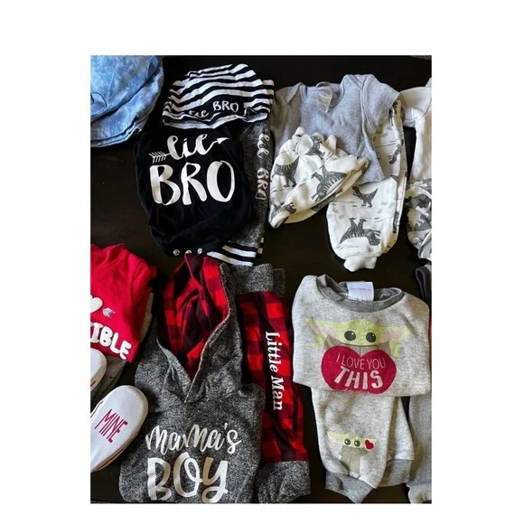 Bundle of both long sleeve and short sleeve outfits, jeans, and tshirts. 32 pieces. I am not separating anything, he’s grown out of it all and most weren’t even worn yet....