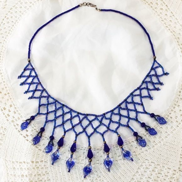 Handcrafted Beaded Necklace and 3D Beadwork Earring Set. Vintage from the 1980s. Made by Alaskan artist Nancy Karacand. Necklace measures 17.5" - Earrings measure 4.25"Beautiful Valentines Day gift! (Wine goblet not included.)This item is cross advertised. First come, first serve.