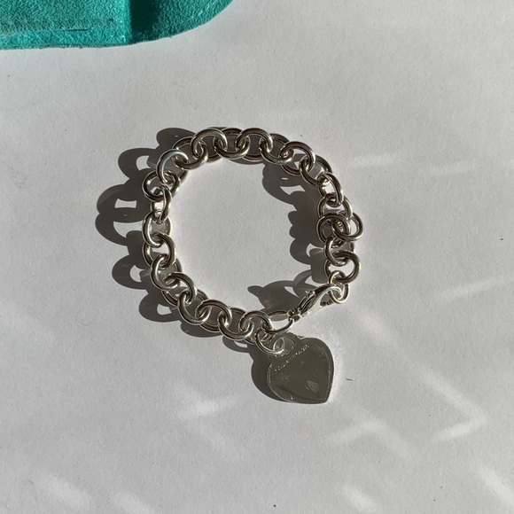 Tiffany & co return to Tiffany heart tag charm bracelet great condition 7.5” sterling silver