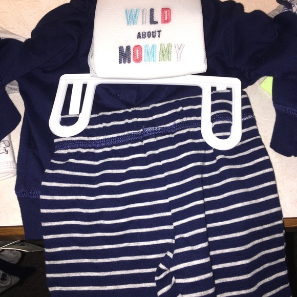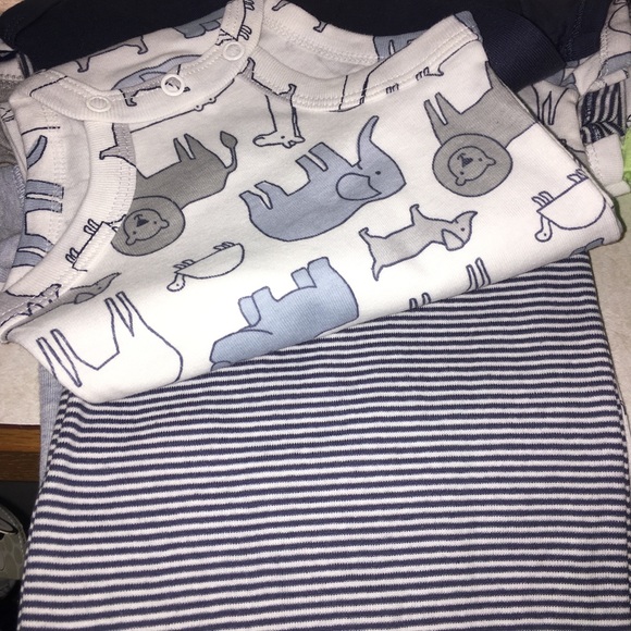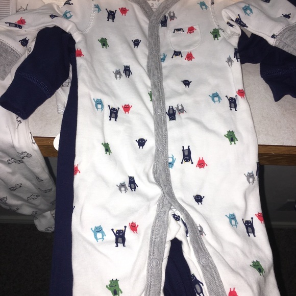 0-3 month three piece vest set • 3 month five onesies set • 3 month three piece jacket set • 3 month two footie pajamas • 3 month footie pajama with bib • 3 month camo...