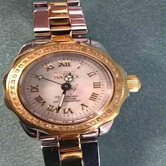 Invicta Professional watch with 46 Diamonds, Stainless Steel. Swiss movement. Caliber 763. Mother of Pearl face. Flame Fusion Crystal. 7 1/2" long. 56.9 grms