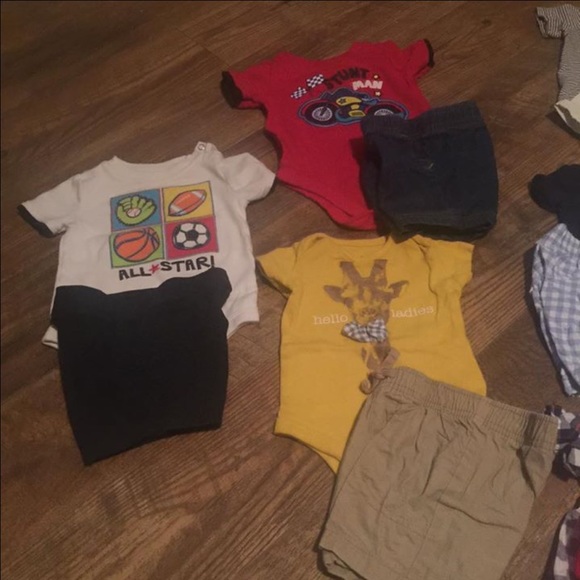 All of the outfits and onsies except like three came from kohls and jcpenney. All in excellent condition. No holes or stains. It wouldn´t let me add anymore picture so onsies aren´t pictured