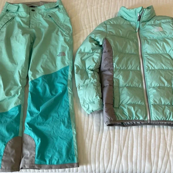 Arctic green girls, Northface, ski pants and winter jacket;Northface similar pic