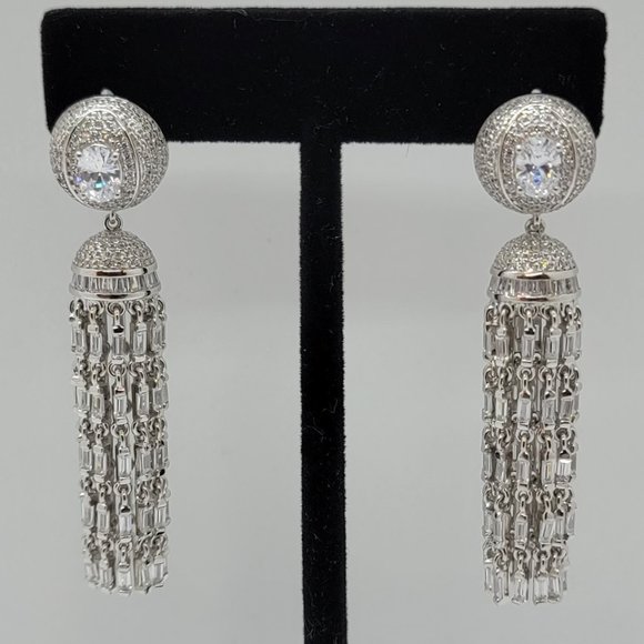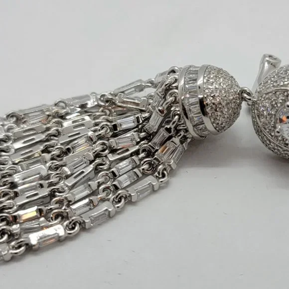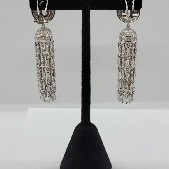 Sterling waterfall Italian Pendant Earrings Swarovski Crystals. Drop down dangle earrings.