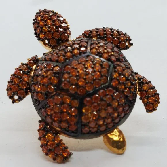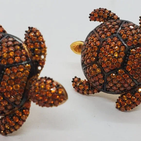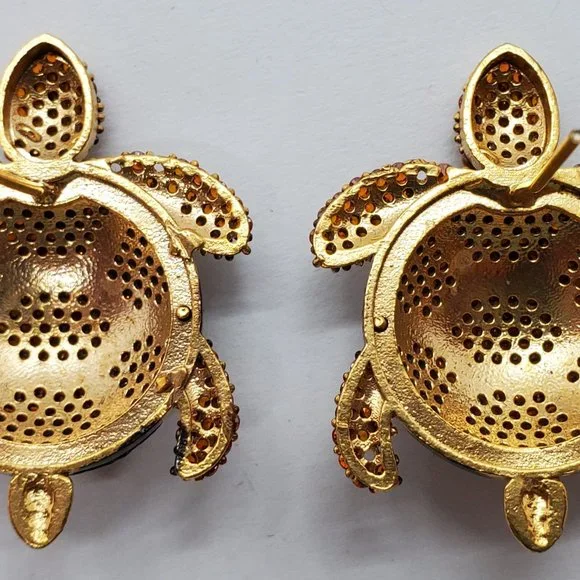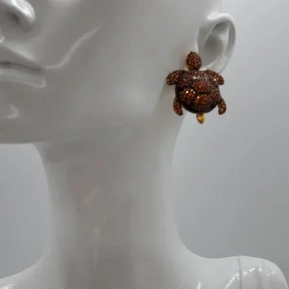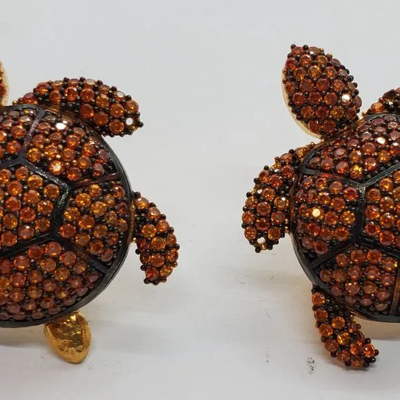 Italian hand Made Turtle Swarovski Crystal Earrings. Beautiful orange color.