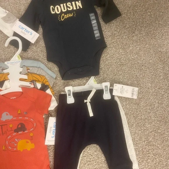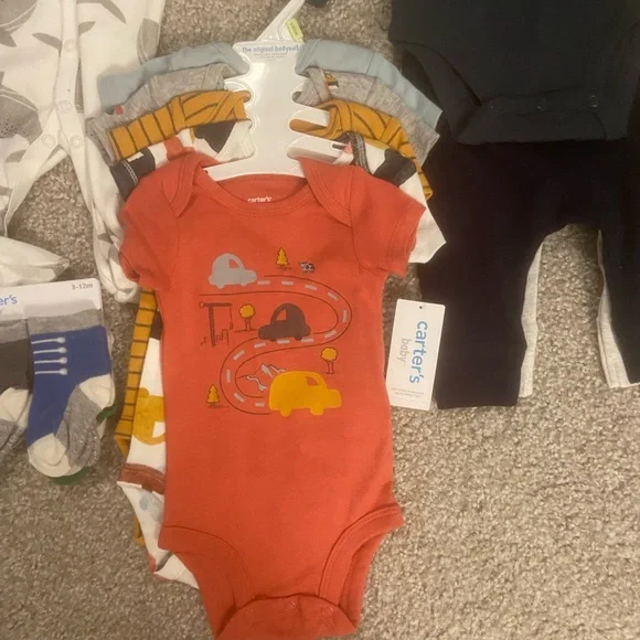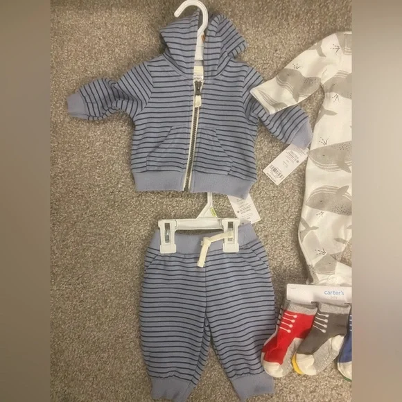 Size 3-6 months with a newborn sized hoodie. Brand new with tags!