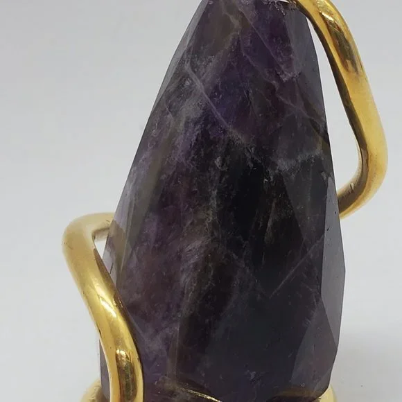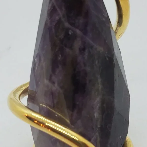 Italian Large Amethyst stone Placed in between 24kt Gold PLT wrap hat is holding the amethyst in place. This Pendant may be used as a necklace piece or a decoration for any of your favorite items.