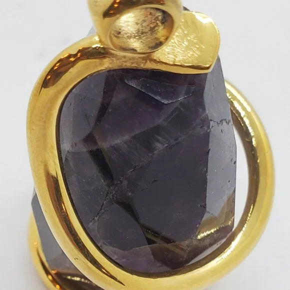 Italian Large Amethyst stone Placed in between 24kt Gold PLT wrap hat is holding the amethyst in place. This Pendant may be used as a necklace piece or a decoration for any of...