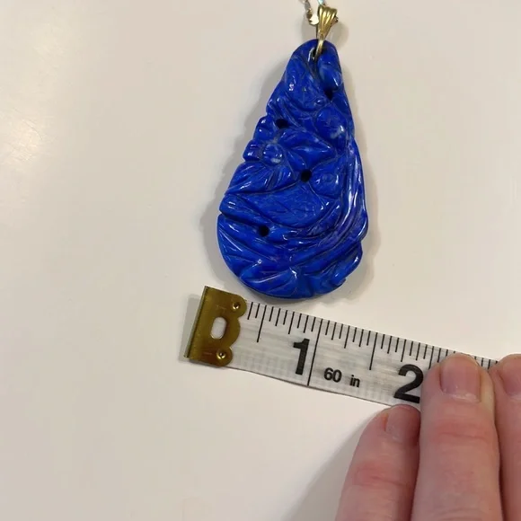 14 karat gold and lapis pendant with beautiful cut flowers and birds it’s a substantial piece but not too overpowering