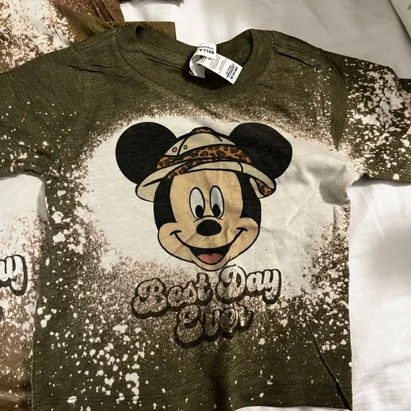 4 Disney shirts bought on Etsy Bella canvas brand soft(1)-adult small Minnie (1) -Minnie 5t (1)- Mickey 18-24 months (1)- adult large Mickey Paid $23 each
