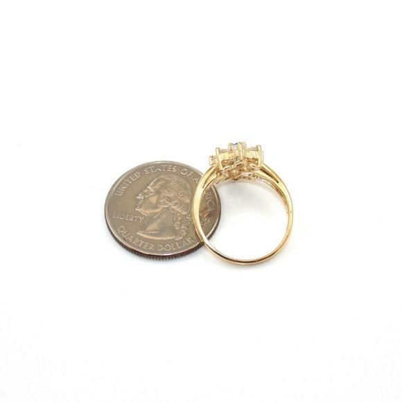 For offer is a 14K Yellow Gold Blue Topaz Halo Ring Size 8.25.Details listed below.**I AM NOT 100% SURE OF THE STONES SURROUNDING THE TOPAZ**RING SIZE ~ 8.25RING FACE (MM) ~ 15...